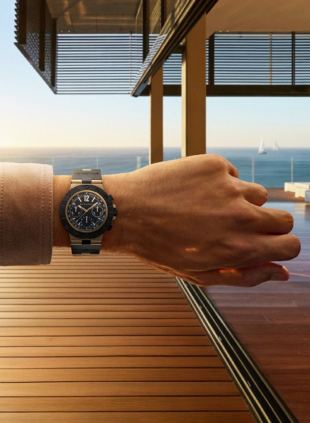 Two powerful, distinctive takes on the watch emerge from this alliance of materials: Bvlgari Bronzo GMT and Bvlgari Bronzo Chronograph. Two complications, two temperaments. The GMT for those who travel. The chronograph for those drawn to precision and pace. Both steeped in Italian flair, rich heritage, and watchmaking savoir-faire.