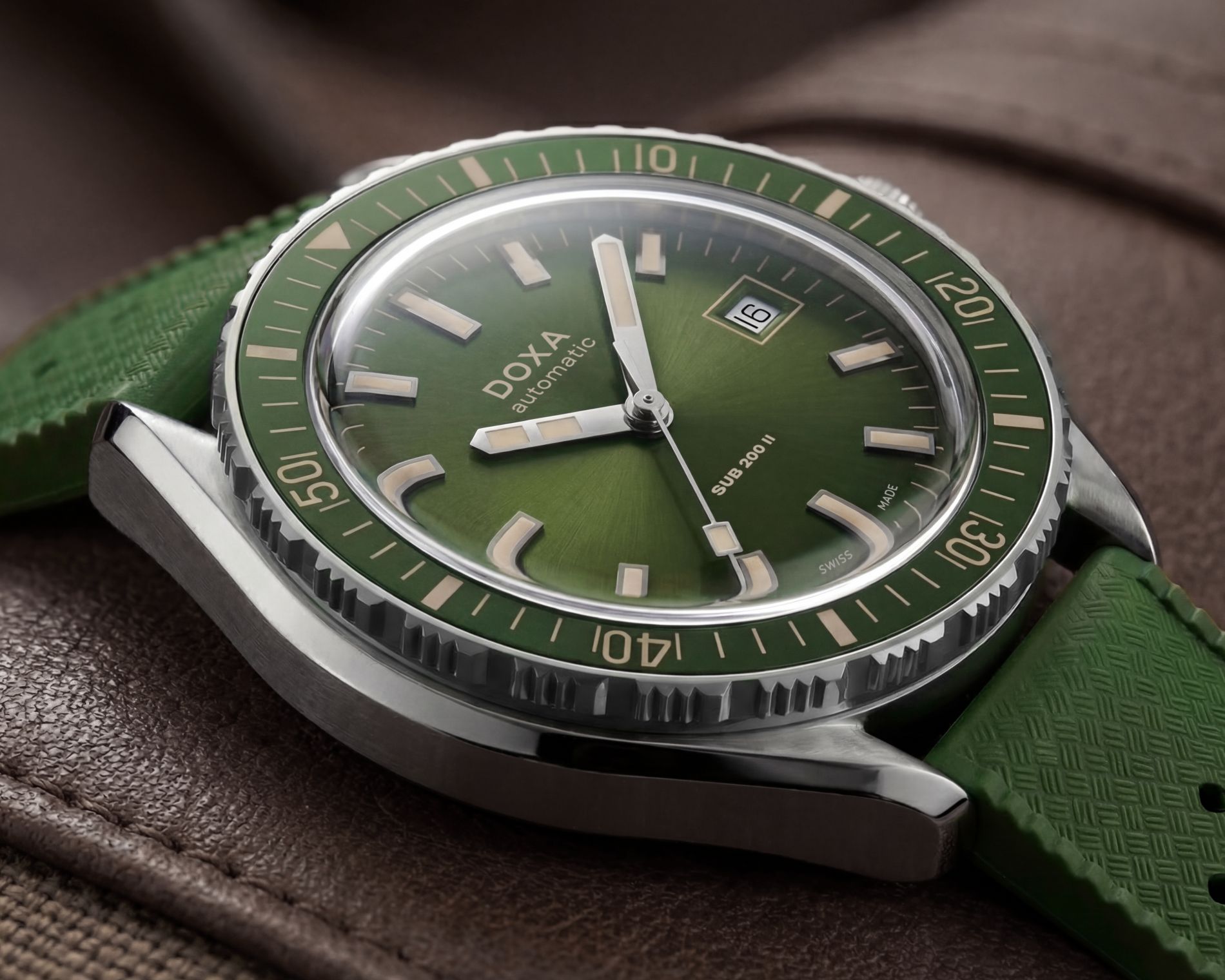 خيار آخر للحزام: تأتي ساعة SUB 200 II أيضًا بحزام مطاطي جديد ذي ملمس مميز، بتصميم مستوحى من ساعات الغوص الكلاسيكية، مما يوفر طريقة ثانية لارتداء الساعة. يتماشى هذا التصميم الجديد من DOXA تمامًا مع الطابع التاريخي للمجموعة، وهو مصنوع بدقة متناهية ليجمع بين الأناقة والأداء. يضفي سطحه المحكم لمسةً مميزة، مع مرونة مثالية لضمان راحة استثنائية عند ارتدائه.