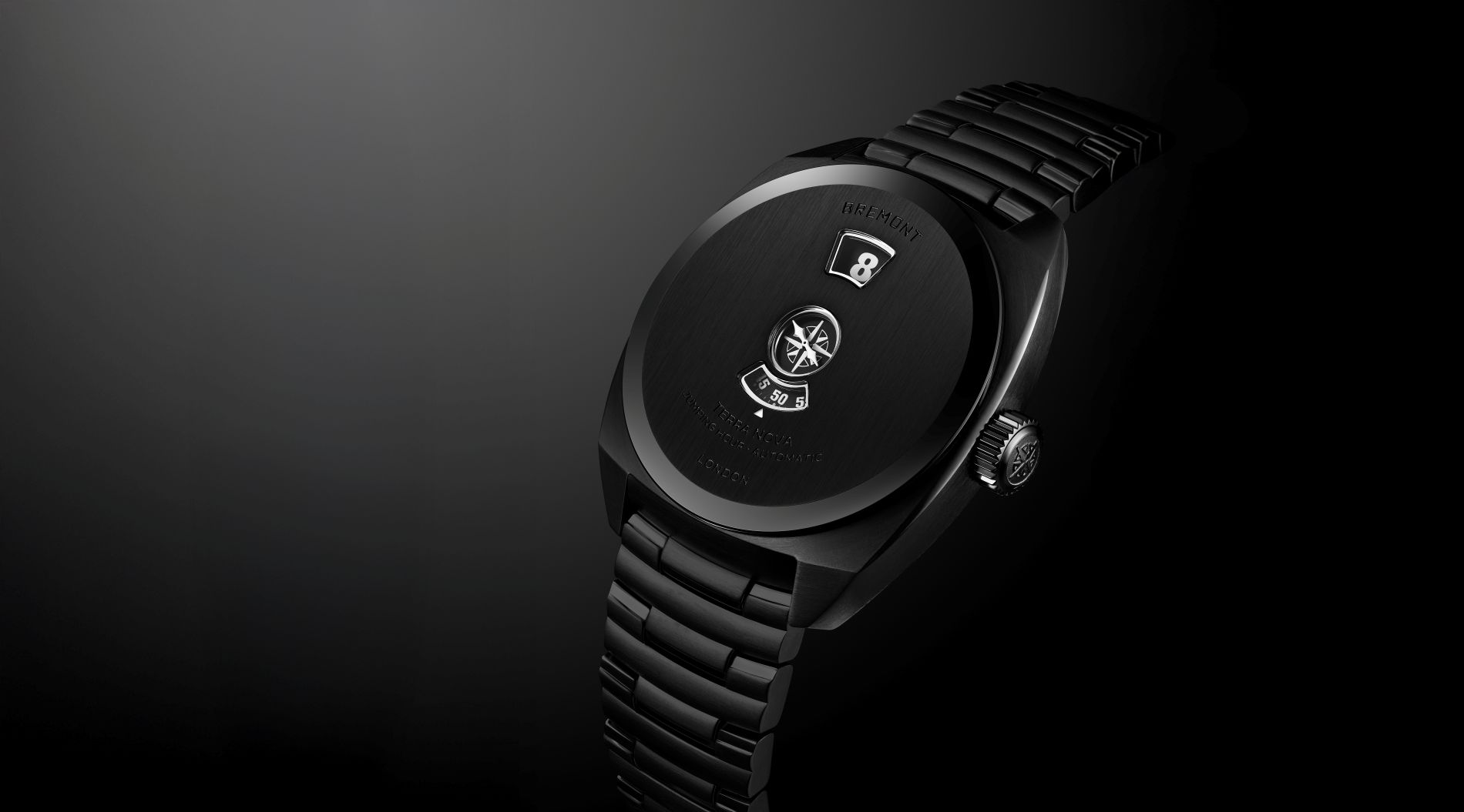 Following the sell-out success of the limited edition cupro-aluminium bronze edition in April 2025, and the 904l steel core edition in October 2025, the introduction of a full black DLC edition transforms the Terra Nova 38 Jumping Hour into something altogether more dramatic — a statement of purpose and intent. It is modern, dramatic, and magnetic — a watch that commands attention without compromise. Powerful in design and execution, it reinforces Bremont’s belief that bold ideas and mechanical innovation can coexist with rugged, real-world performance.