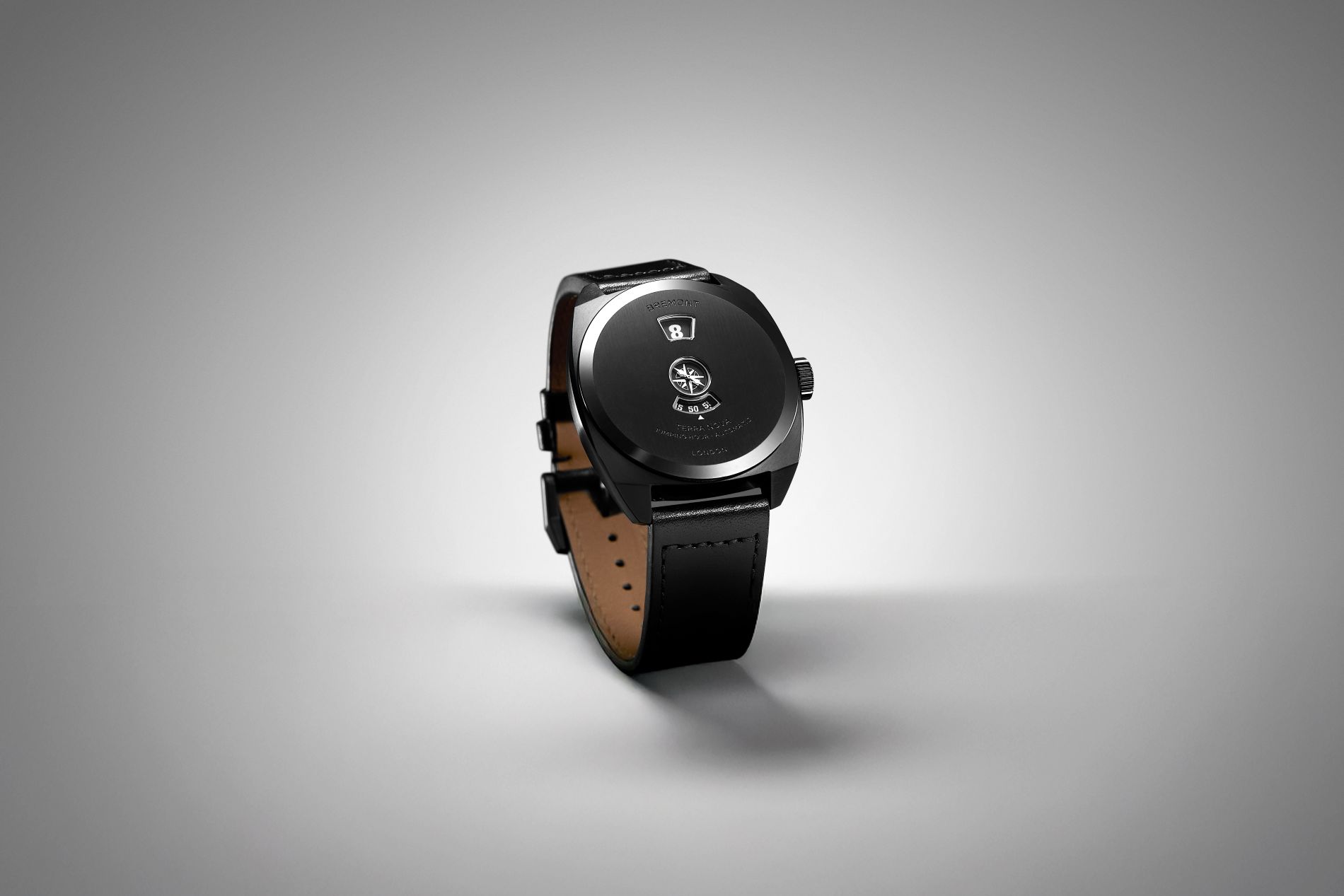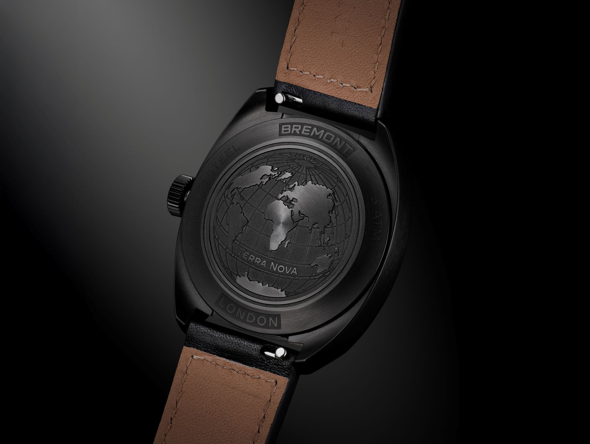 Complimenting the contemporary Terra Nova case, two strap variants are available: a Terra Nova bracelet crafted from polished and brushed 904l steel with black DLC finish and deployment clasp; and a black leather bund strap, providing exceptional comfort and protection to the wearer. The introduction of a bund strap to the Terra Nova field watch line continues the collection’s nod to early 20th century watch design as they were first used by pilots during WWII to protect their wrists from extreme temperatures. The design also gained popularity amongst alpinists, equally seeking comfort in extreme environments. For a more classic approach, the bund can be removed to reveal a more traditional, black calf leather strap.