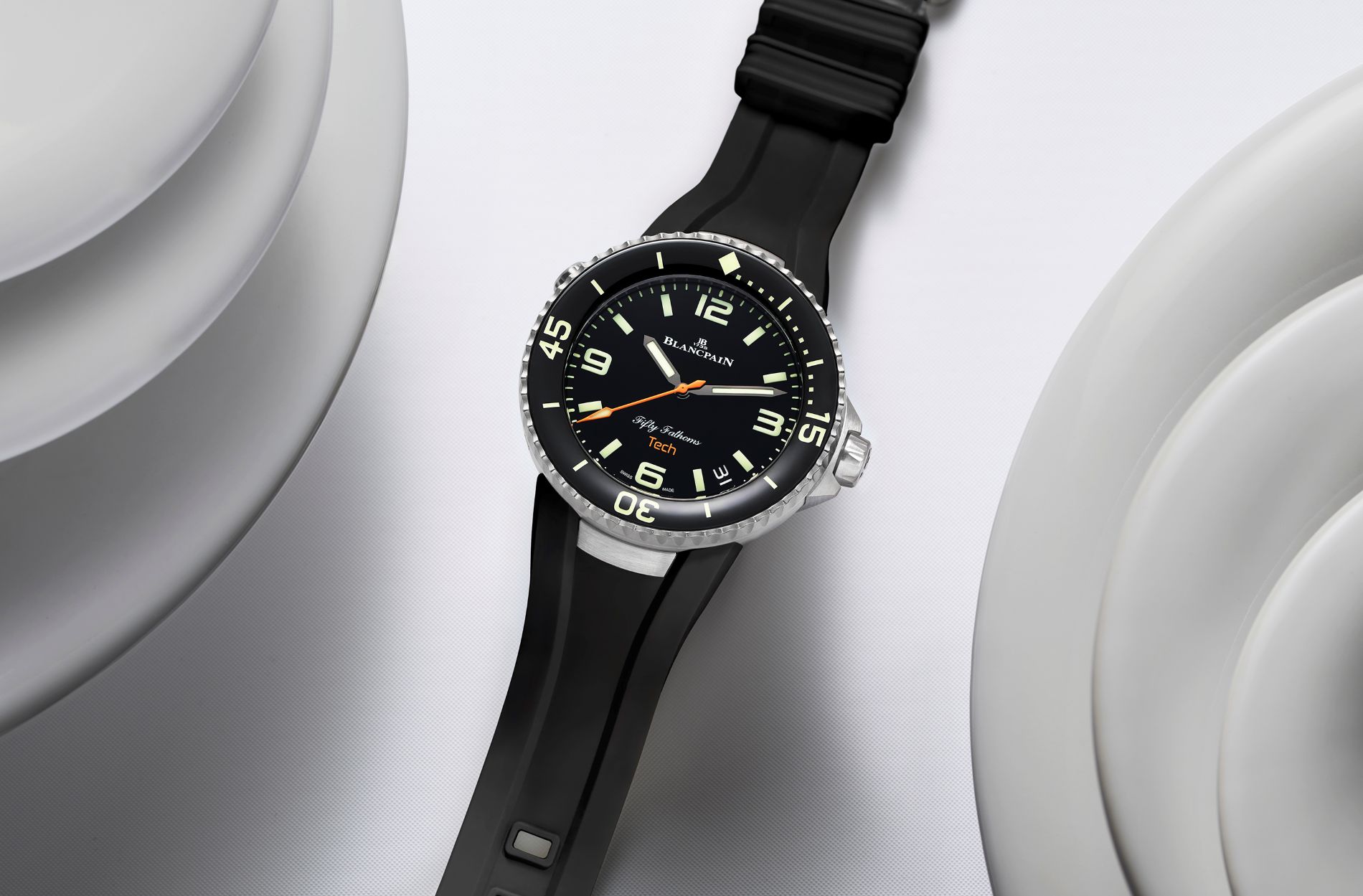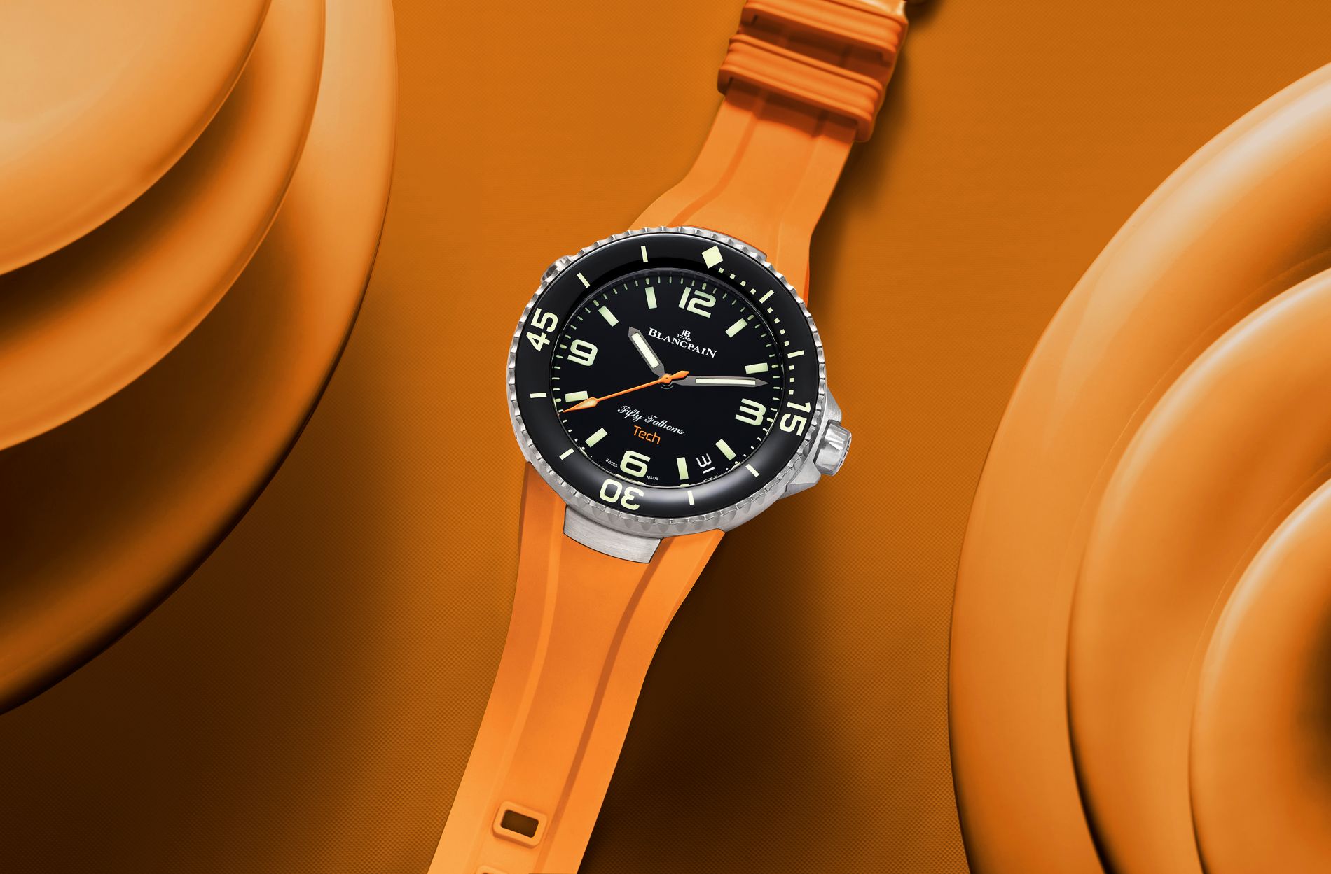 Color, too, is making waves. Beyond classic black rubber, Blancpain is releasing two new summer-ready hues: a crisp white and a vibrant orange. The latter isn’t just an  aesthetic flourish; it matches theTech’s orange central seconds hand and TECH inscription on the dial, proving that even the most serious diving instruments can embrace personality and fun.