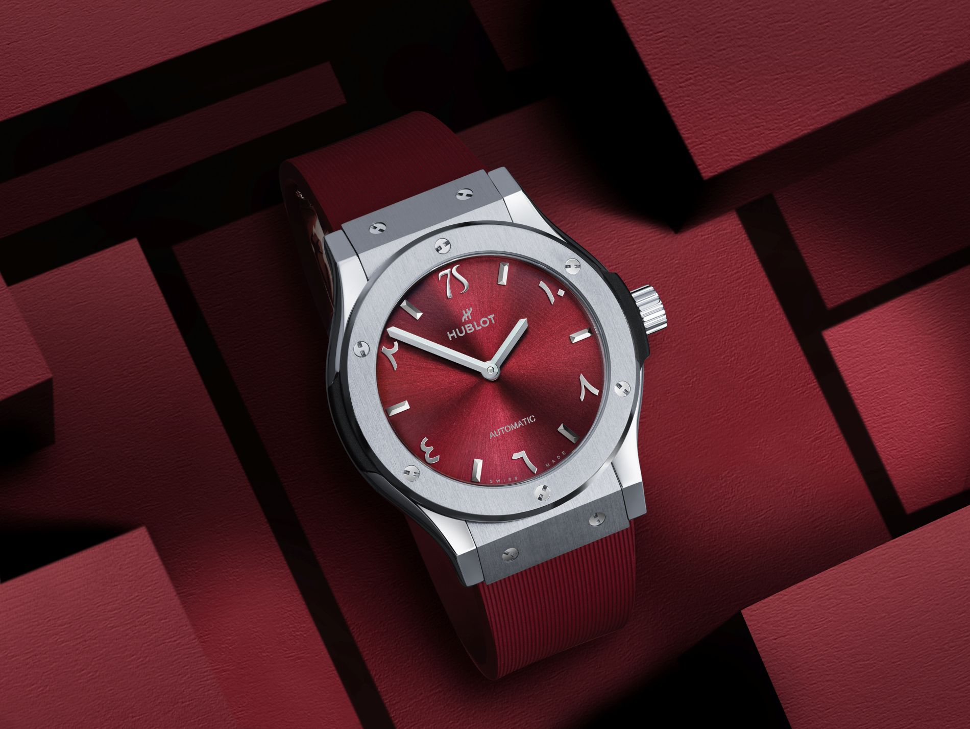In celebration of this milestone, Hublot took inspiration from Seddiqi’s 75th anniversary logo, creating timepieces in a rich burgundy tone with a radiant dial marked at 12 o’clock by the commemorative logo. The design is further elevated with Eastern Arabic numerals, paying tribute to the United Arab Emirates – the proud homeland of Ahmed Seddiqi. Adding a distinctive touch, the movement of both watches runs counter-clockwise, a refined nod to Arabic culture that underscores Hublot’s deep connection with the UAE.