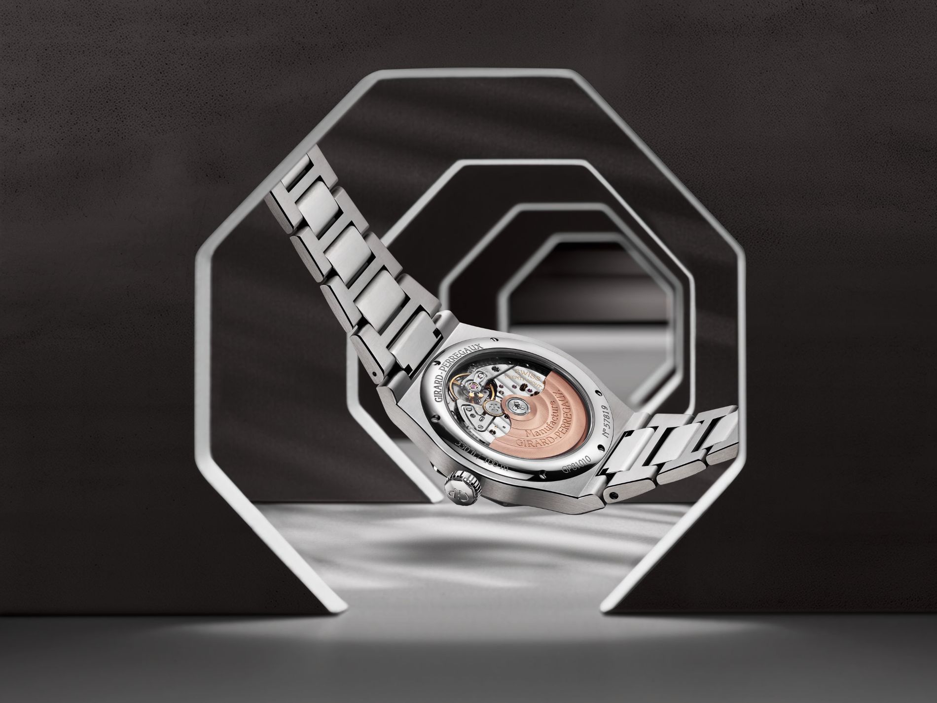 Like the original model launched in 1975, the new Laureato 42 mm is driven by an in-house calibre, now the GP01800 automatic movement, entirely developed and assembled at the Manufacture in La Chaux-de-Fonds. Measuring just 3.97 mm thick, this selfwinding movement offers a power reserve of at least 54 hours.