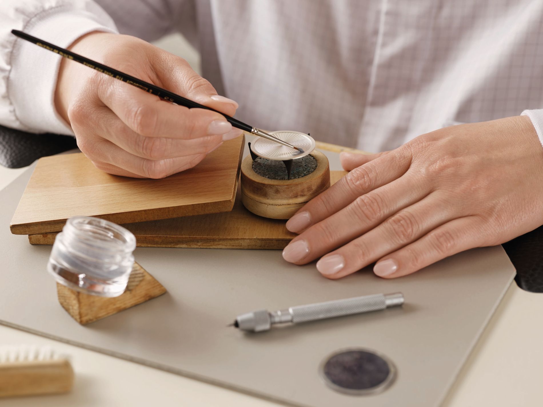 The enamel is composed of a precise mixture of silica, minium, potash, and soda, finely ground into powder and combined with metal oxides to achieve its nuanced hue. Layered carefully onto the dial, it is then fired at around 800°C in a kiln—repeated five to ten times—to achieve its flawless, radiant surface. Due to the unpredictability of this process, some of the dials are rejected as they feature slight imperfections. But those that survive emerge as enduring masterpieces—impervious to time, fading, or aging.