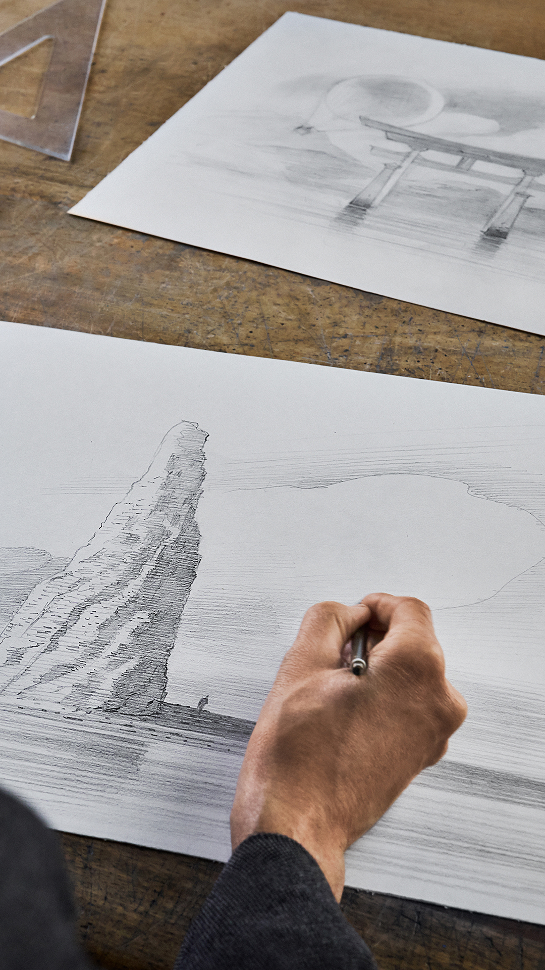 To execute one of the clock’s most poetic components, Denis Flageollet turned to François Schuiten, the acclaimed Belgian illustrator known for his imaginative, speculative worlds. A long-time collaborator of Denis Flageollet, François Schuiten has also worked with Louis Vuitton in the past, notably providing the illustrations for Mars by Sylvain Tesson for the House Travel Book collection. A recent exhibition of François Schuiten’s work—an evocative exploration of time—ultimately led