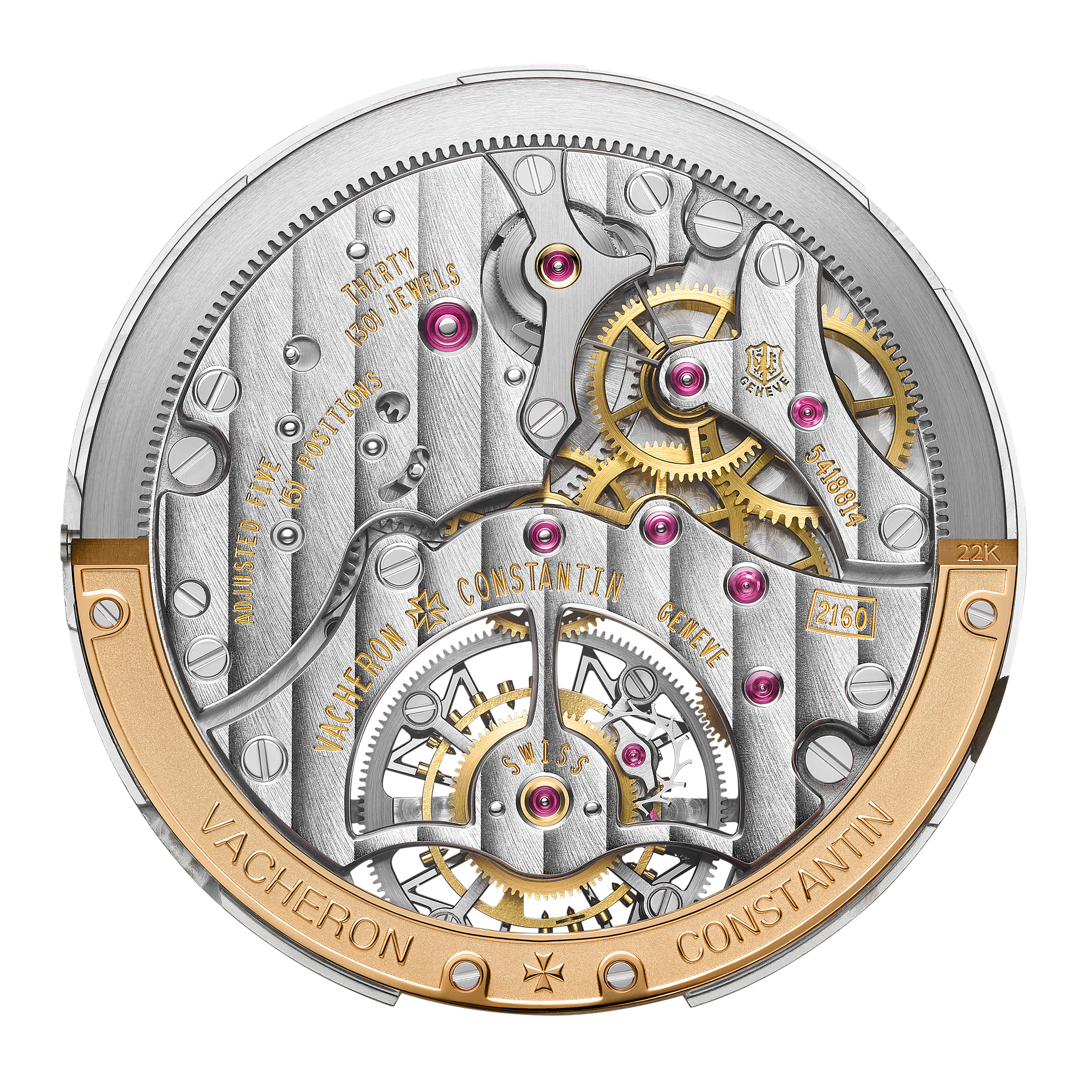 An ultra-thin automatic movement, calibre 2160 with peripheral oscillating weight.