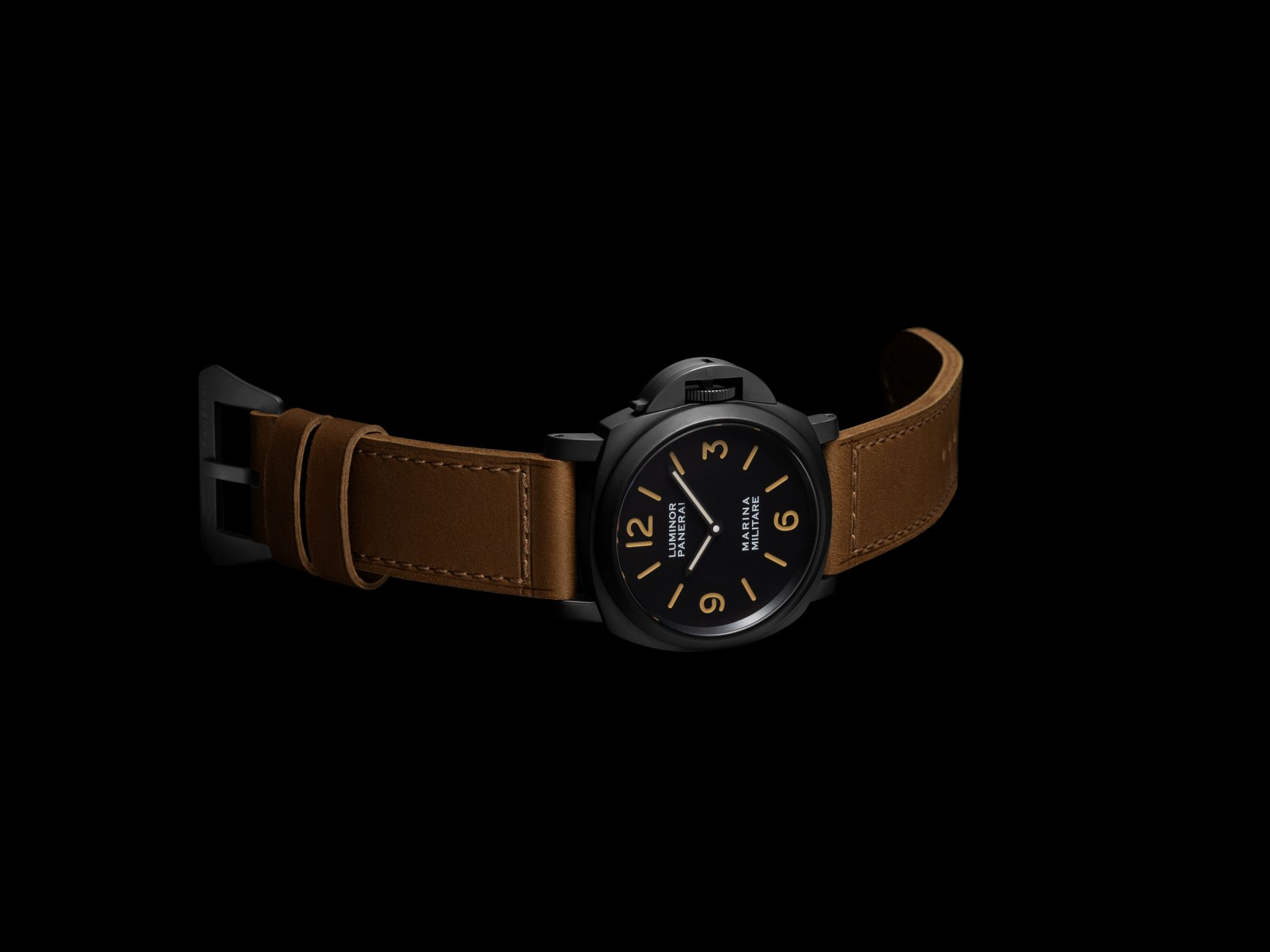 This unintentional anomaly was corrected in later batches, but only few “non matching” pieces were produced, making them especially rare. The PAM05218 recreates this effect intentionally using caramel Super-LumiNova® on the engraved monolayer matte black dial, paired with hands in a lighter tone—an exacting nod to one of the most cherished details in Panerai’s civilian debut. The case features a closed, screw-down caseback with a water resistance up to 30 bar (~300 meters). On the caseback, the Officine Panerai Firenze signature, historic OP logo and watch features appear just as they did on the original. Completing the tribute is a straight, vintage shaped golden brown calf leather strap with a black steel DLC trapezoidal buckle, sewn-in by construction, as on the 1993 model, imbuing the timepiece with a captivating vintage allure. The watch also features a second black rubber strap, paired with an additional buckle.